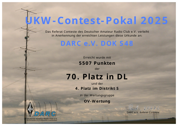 Es gibt das finale Ergebnis des UKW-Contestpokals 2025. Der OV Annaberg hat in Deutschland Platz 70 und in Sachsen Platz 4 erreicht.
